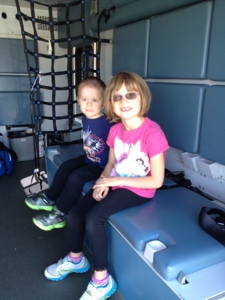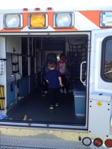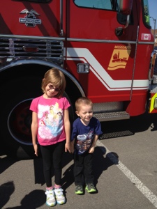 Today Abby, Aiden & I went to Family Day hosted by the Rotary Club. It was a great day, sunny but not too hot. At the park the kids got to go in a fire truck, which went a lot better than the last time I tried to put them in a fire truck. Last year I tried to put Aiden in a fire truck & he freaked out and refused to go in. This time he couldn’t wait to get into the truck. They also got to go in a police car & an ambulance. They also got to listen to some free music & go for a jump in some bouncy castles. While they were listening to the music, they kept referring to the singers as rockstars and really enjoyed listening to the kids band that was performing. Lastly, they also got to try on some wigs & then pigged out on some ice cream & popsicles. It was an awesome day.