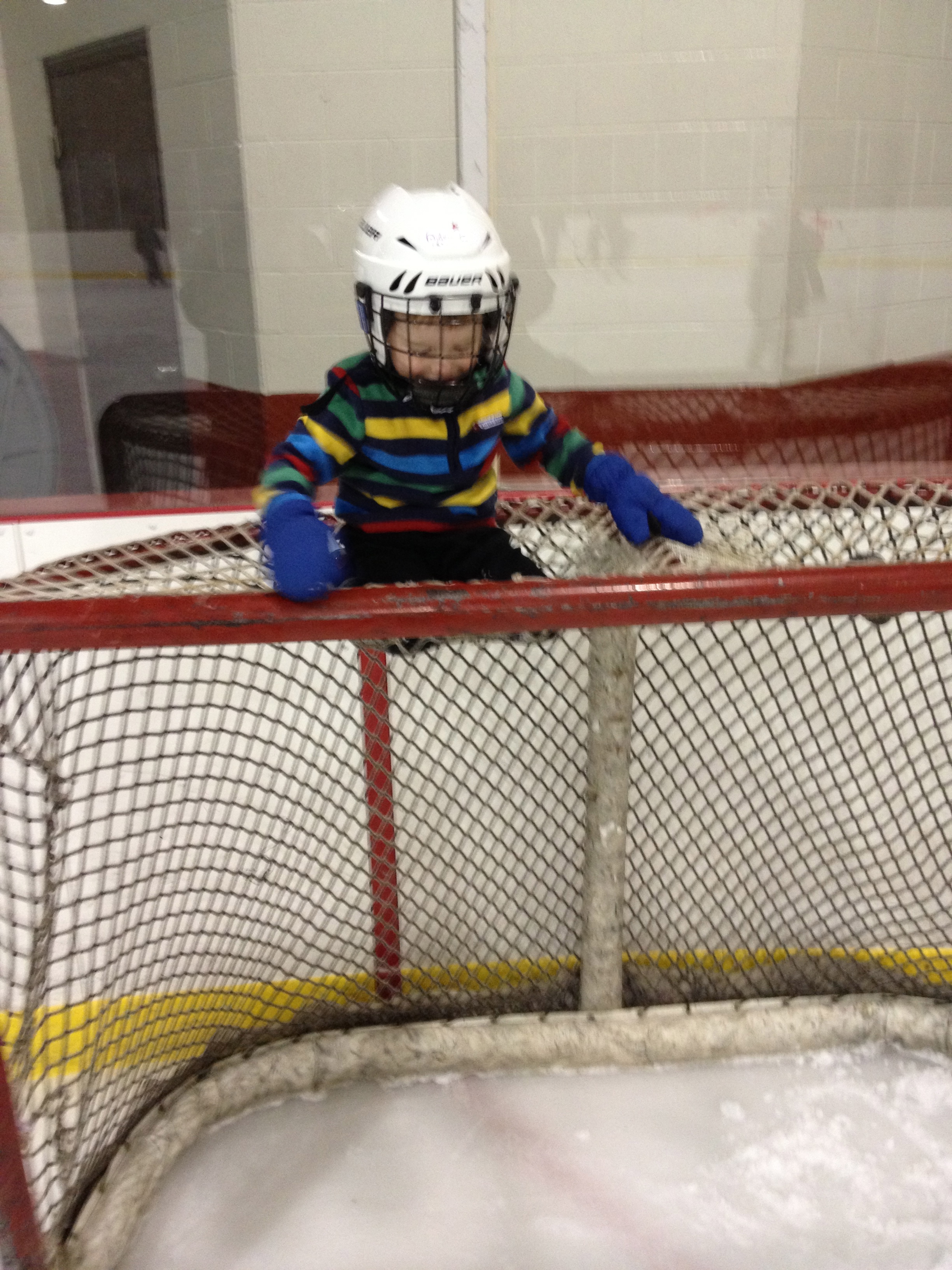 When we got to Mama & Papa’s, we headed down to the arena to go for a a family skate. Since it was family day weekend they were offering free public skating. This was nice because Abby had missed her skating lesson that weekend because we were visiting. The kids did not go very far on the ice but they had fun. This was actually the first time that I had seen Aiden on the ice so that was lots of fun. As you can see from the picture Aiden jumped right up on top of one of the hockey nets!!!. After that we headed up to Lakefield to visit with Grandma and Grandpa.
