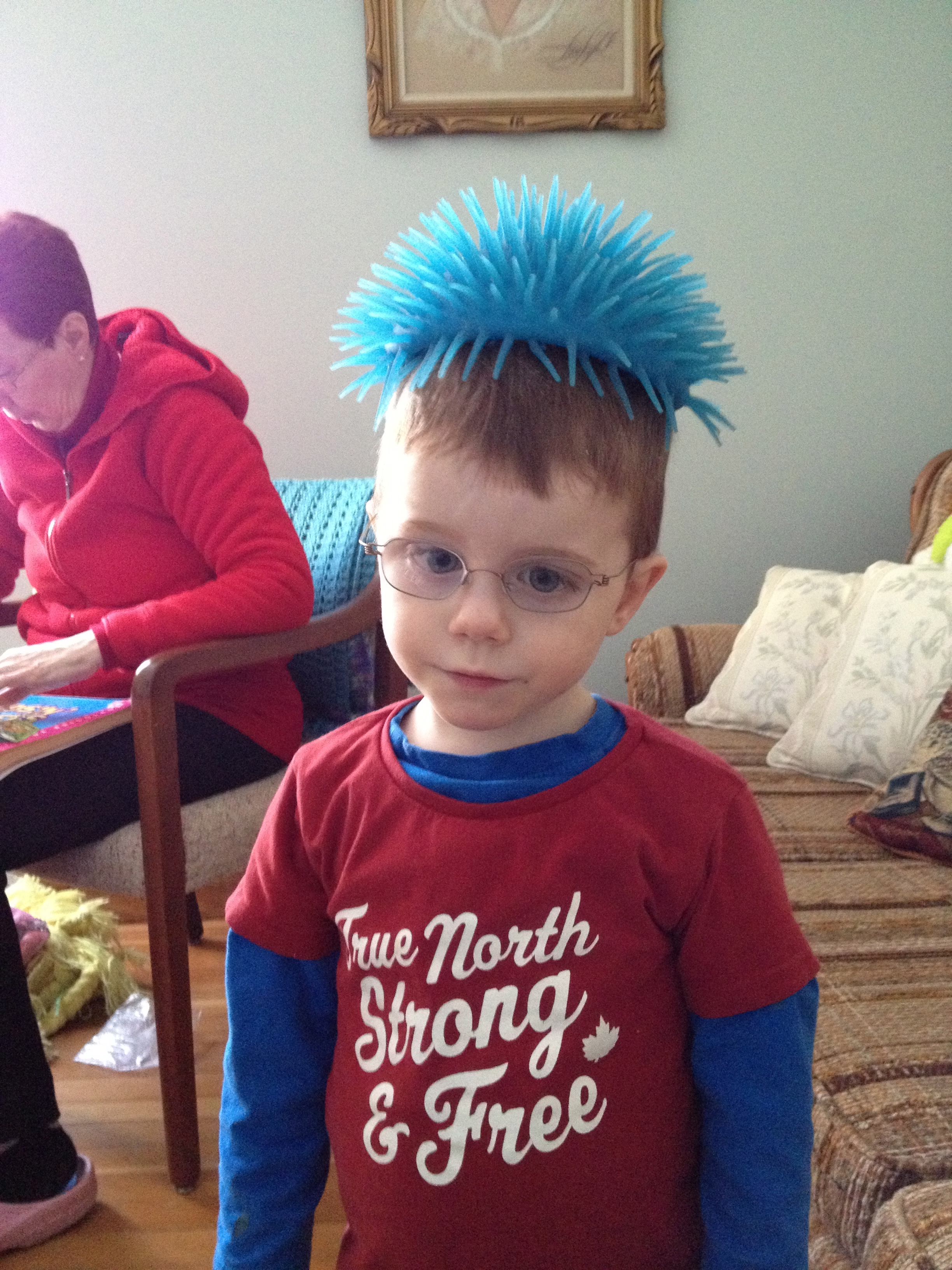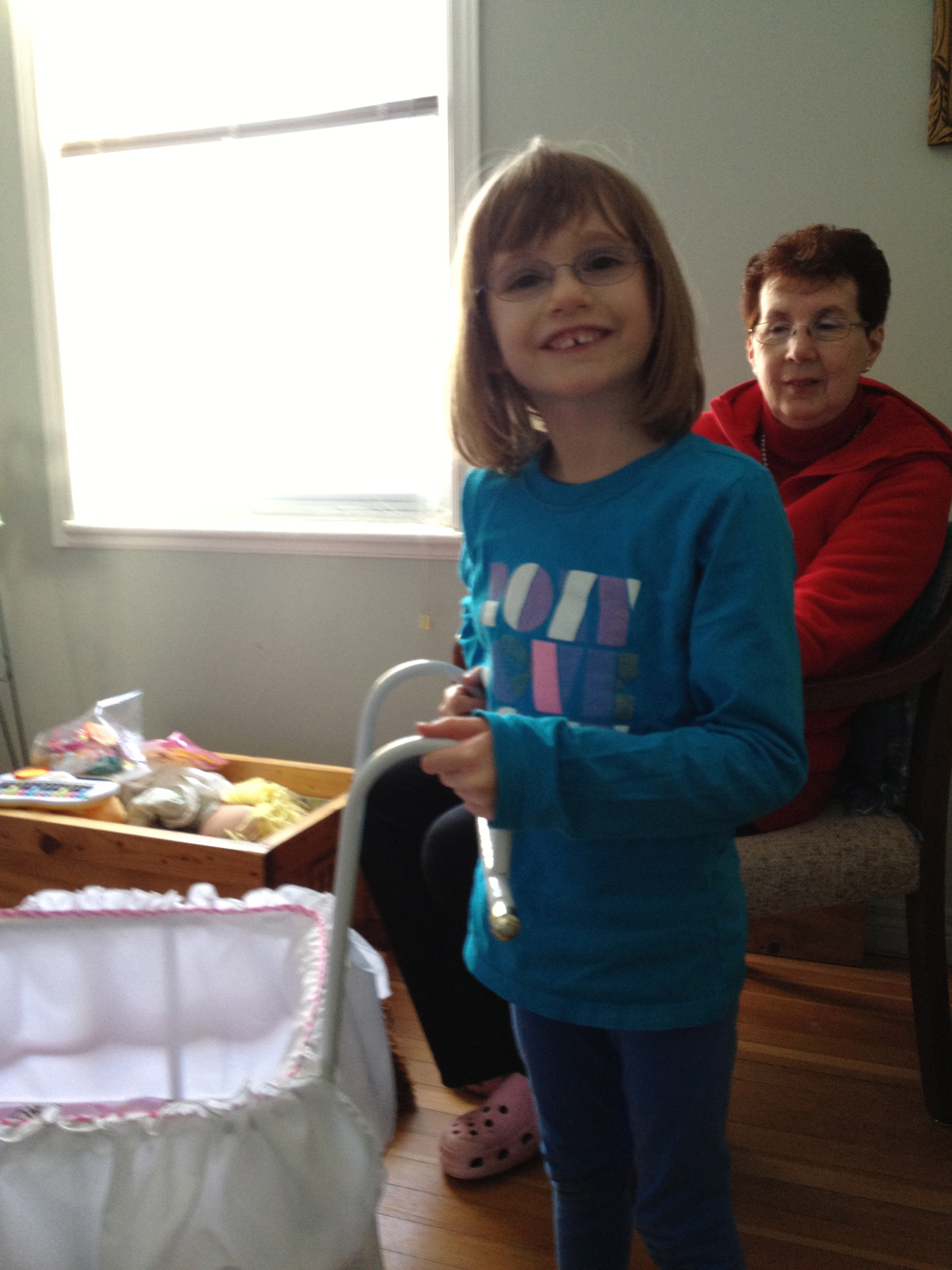 Later in the afternoon we went to visit Grandma and Grandpa. While they were there they got a little silly as you can see by the pictures. The crazy blue thing actually made its way all the way back to Mississauga with us when we left. Abby also had a chance to play with the Pram that Grandma got her for Christmas.