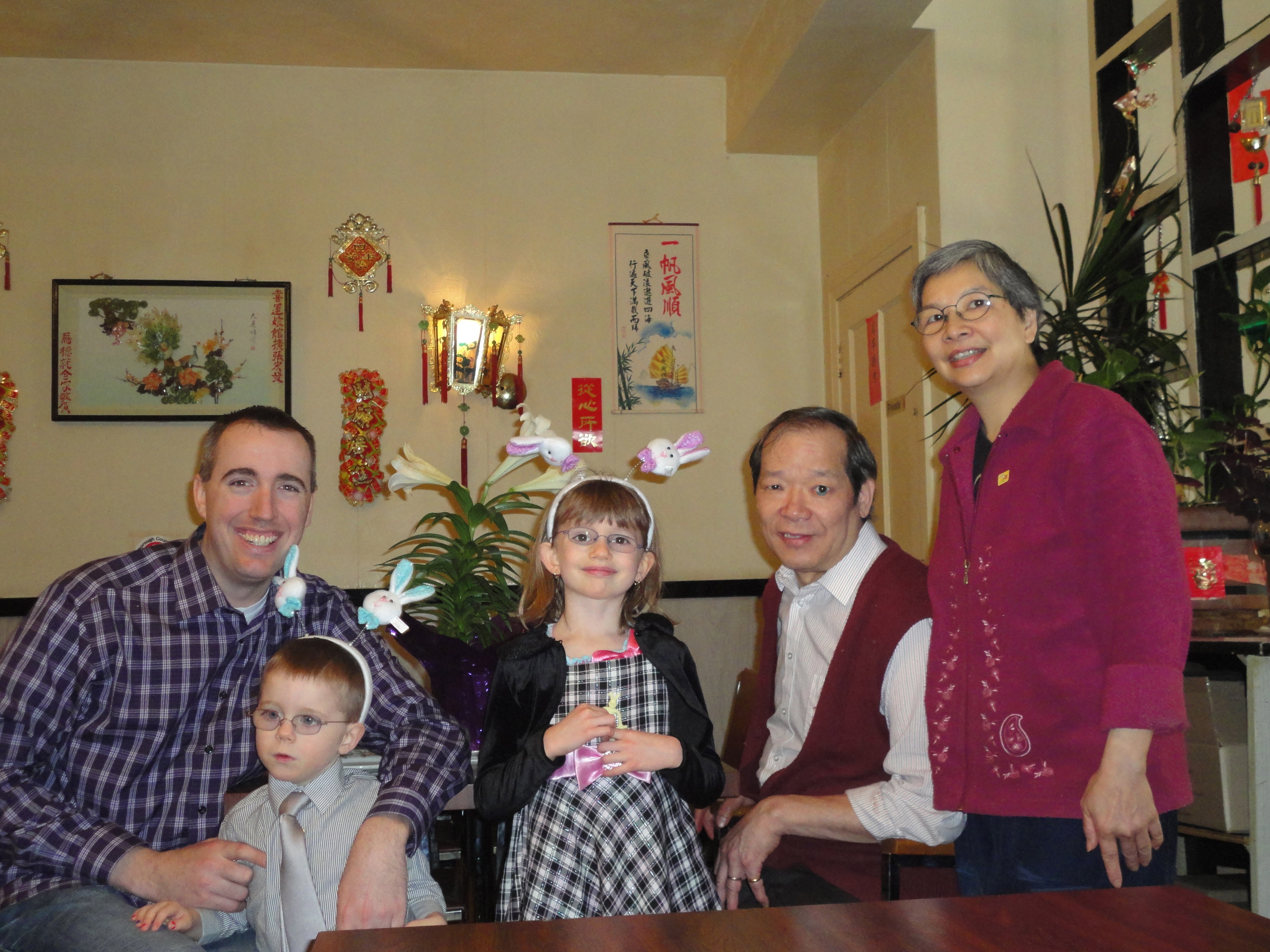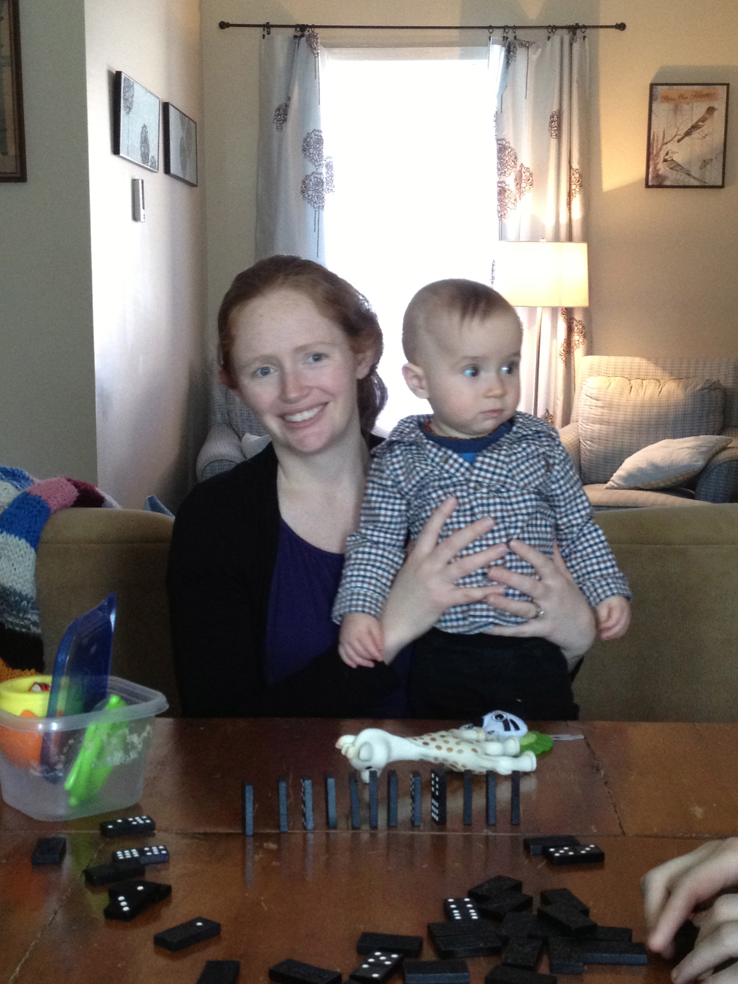 On Saturday morning, we got up and went to Shawn & Megan’s for lunch. Julie and Macklan also came along for lunch. Shawn and Megan made a lovely pork tenderloin and vegetables that we all enjoyed. After lunch the kids played dominoes, basically building them up and knocking them over. After that they went for a small Easter Egg hunt for their gifts from Megan & Shawn. Megan made neat gifts that looked like carrots. This kids really like them and ate most of them when they got home at the end of the day.
