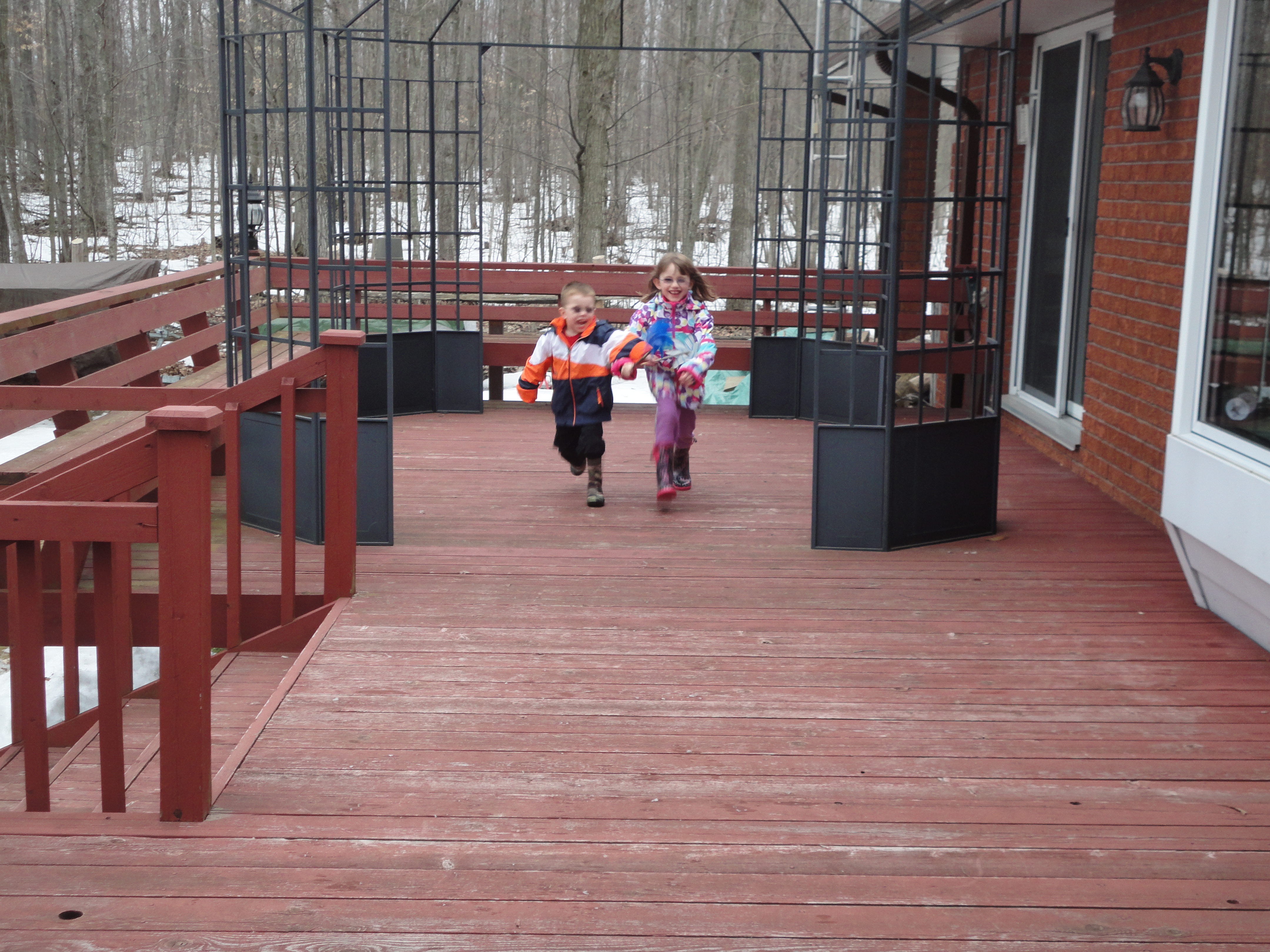On Sunday evening we went for supper and Craig & Jane’s. While there the kids had fund running on Craig & Jane’s deck and also hanging out with their cousin Macklan, who was wearing the same tuxedo that Aiden wore to Peter & Julie’s wedding 2 1/2 years ago.