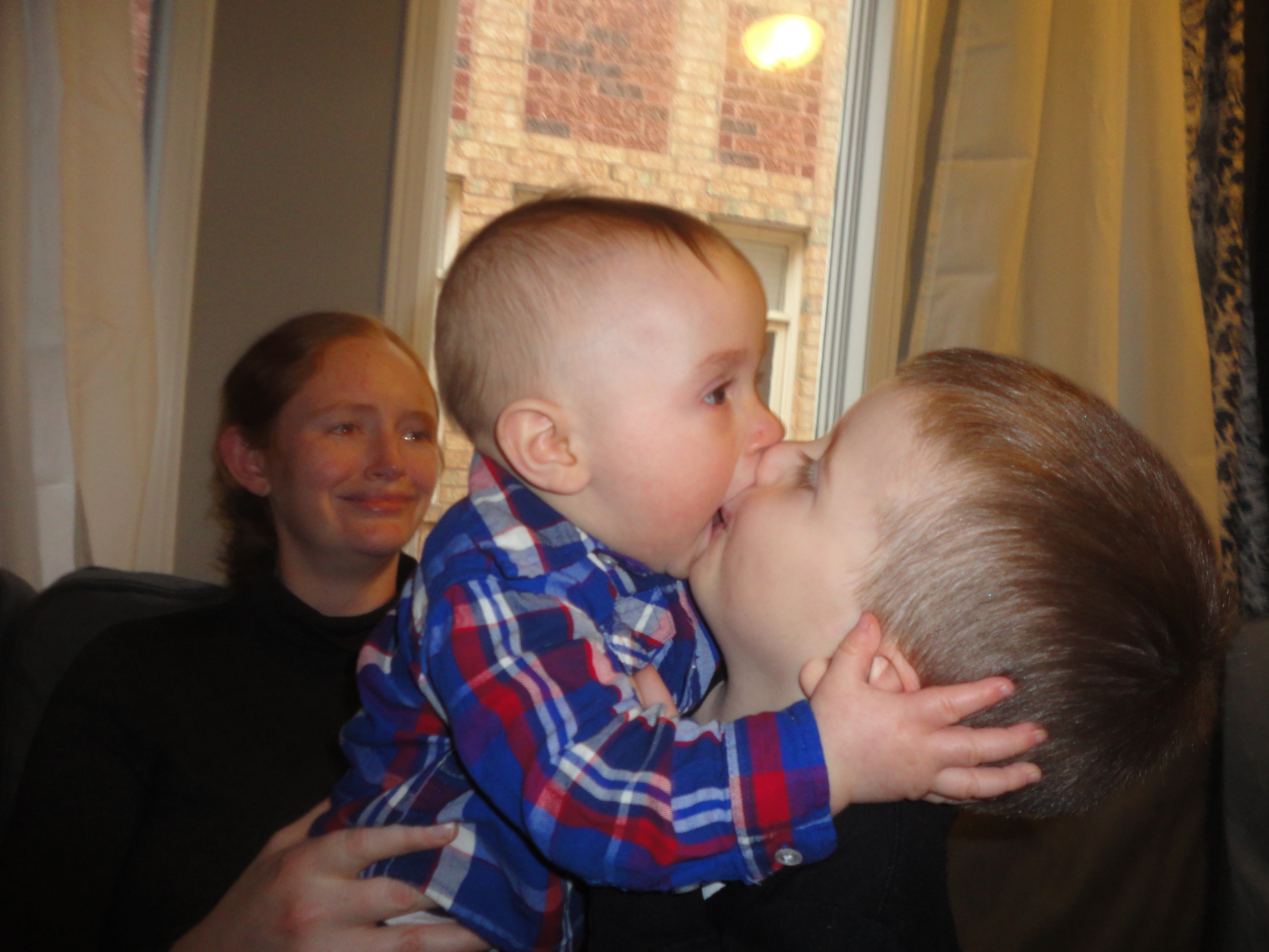 Then on Monday Peter, Julie & Macklan came to stay for a couple days. The kids had a great time playing with Macklan and Macklan in particular loved giving Aiden big giant kisses on his face and head. Julie brought a lovely lasagna that we had for supper on Monday night.