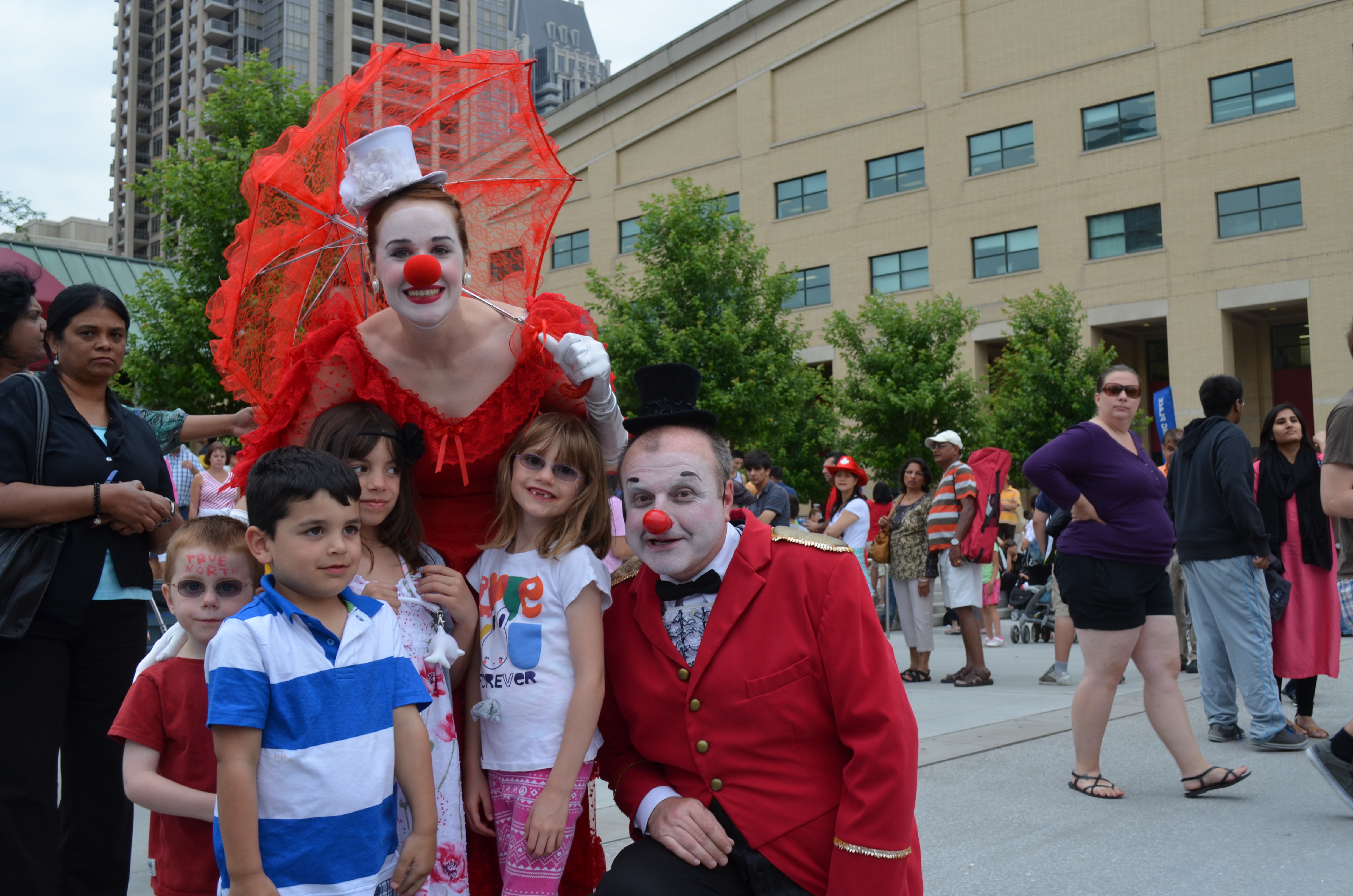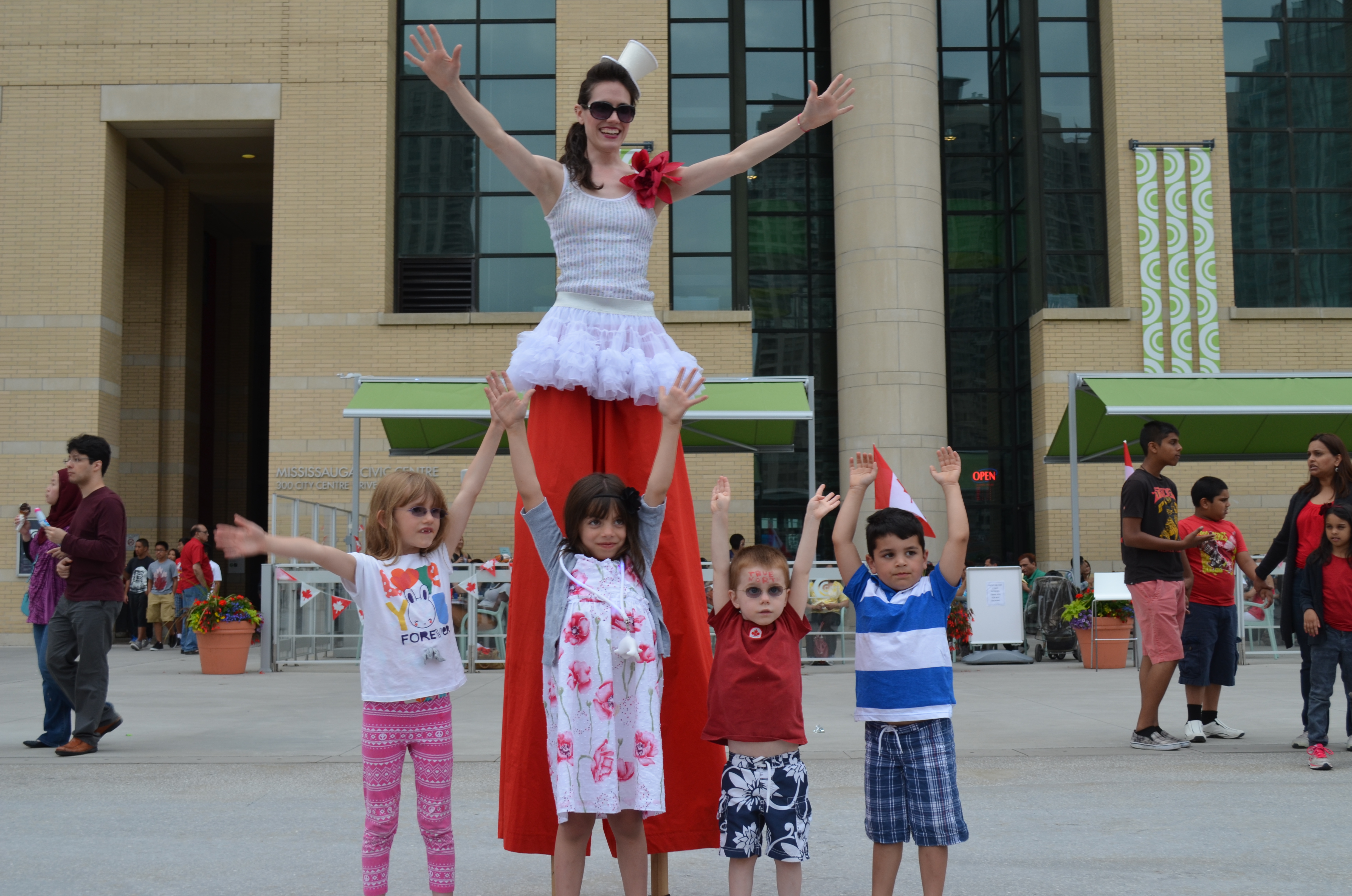 For Canada Day this year, I decided to go to the city’s party at Celebration square. When we got there, we hooked up with some friends and went to check out what was happening. The biggest attraction was the concert, but unless you were sitting right at the front, it did not hold your attention because the sound was not that great. Up in the main area there was not many activities for the kids to do. There a couple of clowns, and some people walking on stilts that were interesting to the kids. However, once they were done seeing this, there was nothing for them to do. At this point, our friends headed out because their daughter had a soccer game (on Canada Day). We hung around for about 15 min and then I decided to go to Streetsville to see what their celebration was like.