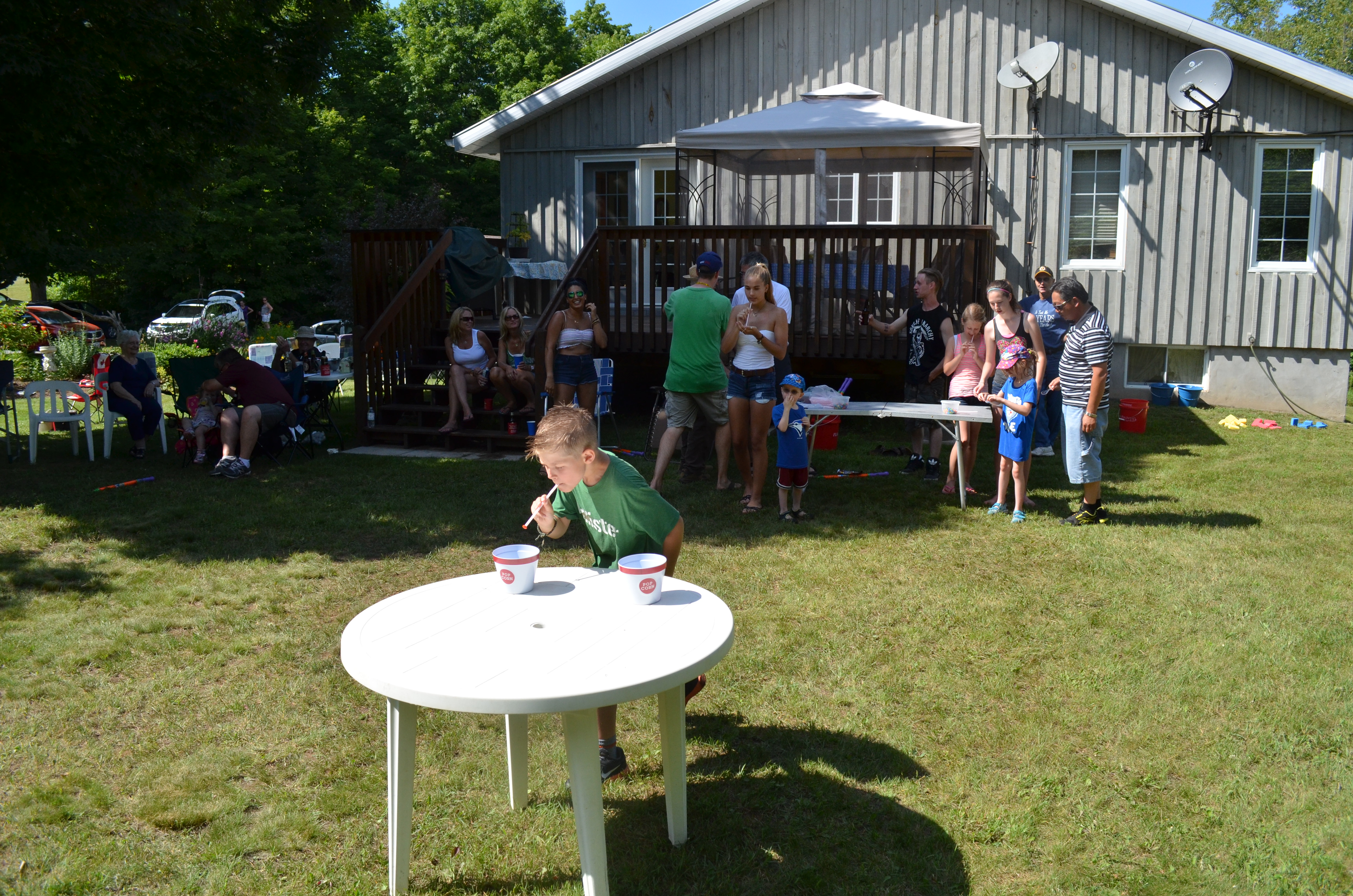 This year’s family reunion was a very hot day with a high of almost 30 degrees. It was a smaller turn out this year with some of the Waudby’s unable to come because of previous engagements. Another notable absence was that of Peter, Julie & Macklan who were in Windsor at a Blues Festival. It was still an awesome day with lost of fun and games played by all. We played the “Junk in the Trunk” game where everyone gets to shake ping png ball out of a kleenex box. We also played the m & m’s game where you carry the smarties on a straw or on a spoon and put them in a bowl. There were also a some other games that you can see in the pictures below.