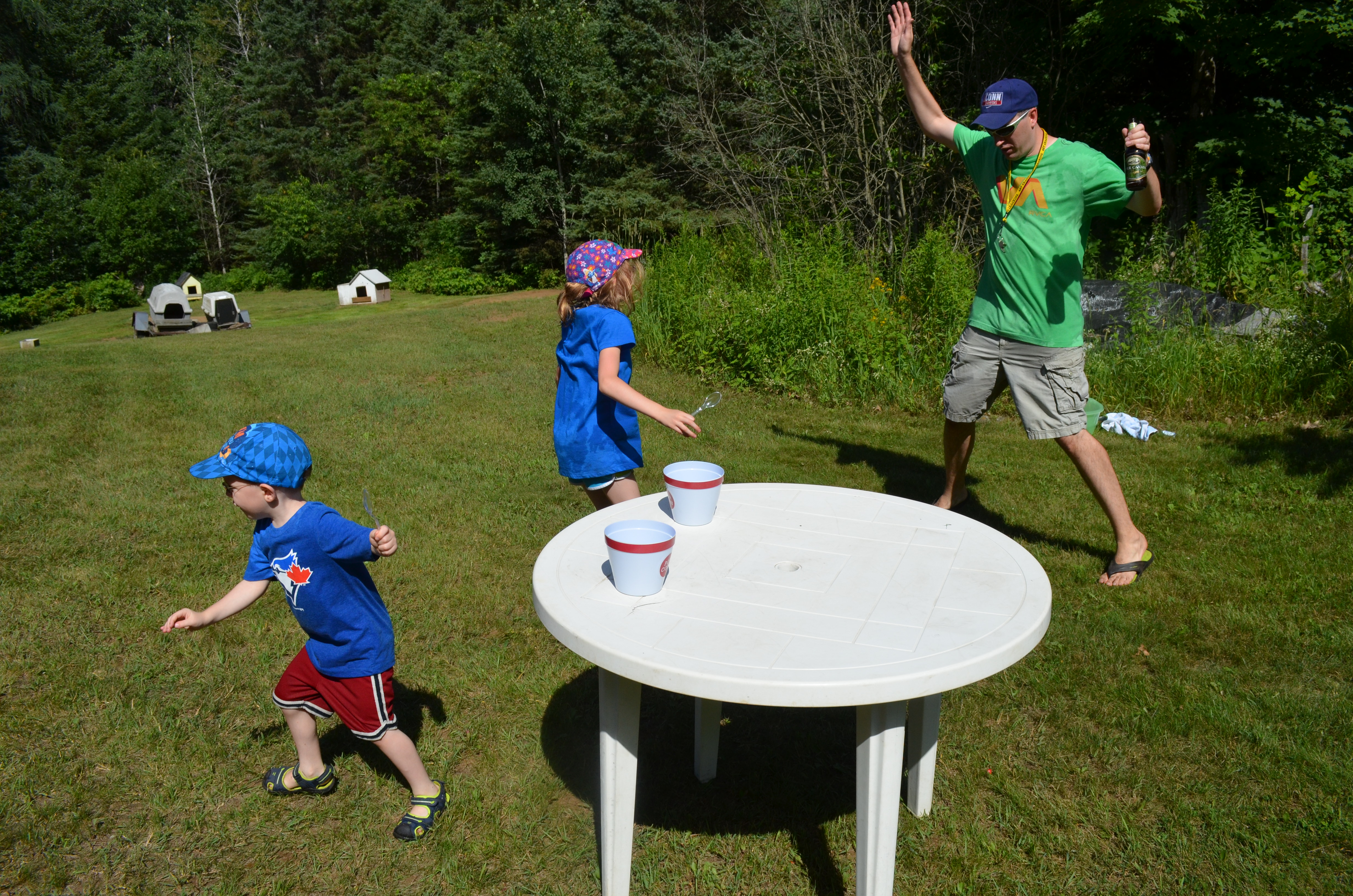 For our sleeping arrangements this year, the kids and I camped outside for the first time together in our new tent and sleeping bags. The kids absolutely loved falling asleep looking up at the stars. In the morning we enjoyed a lovely breakfast and then drove back to Peterborough to visit with Mom & Dad