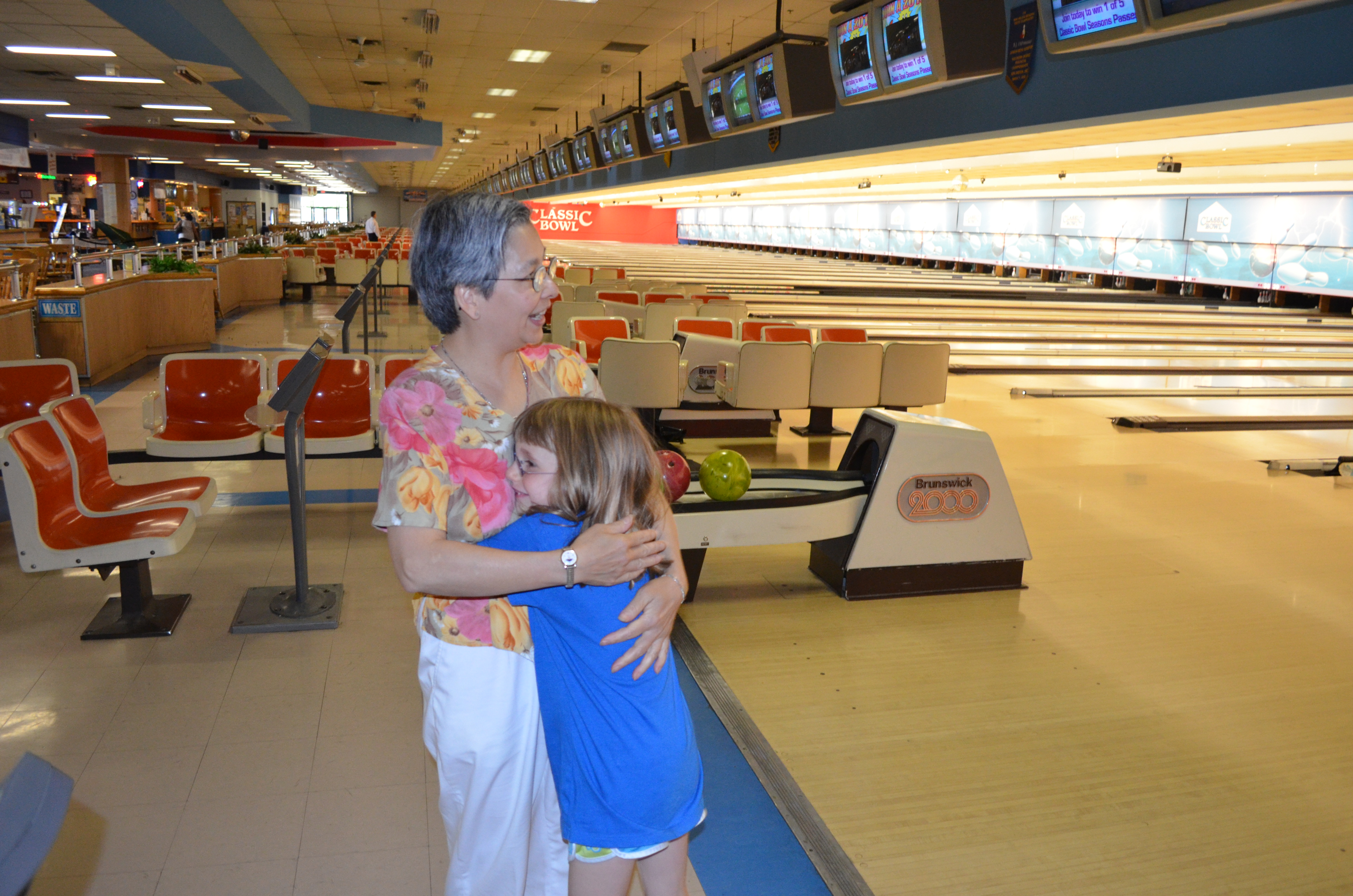 After we finished bowling, we went to eat at The Mandarin. At the Mandarin, they brought Abby a small desert and took a picture of Abby with her special desert that we brought home and stuck on the fridge for a couple months.