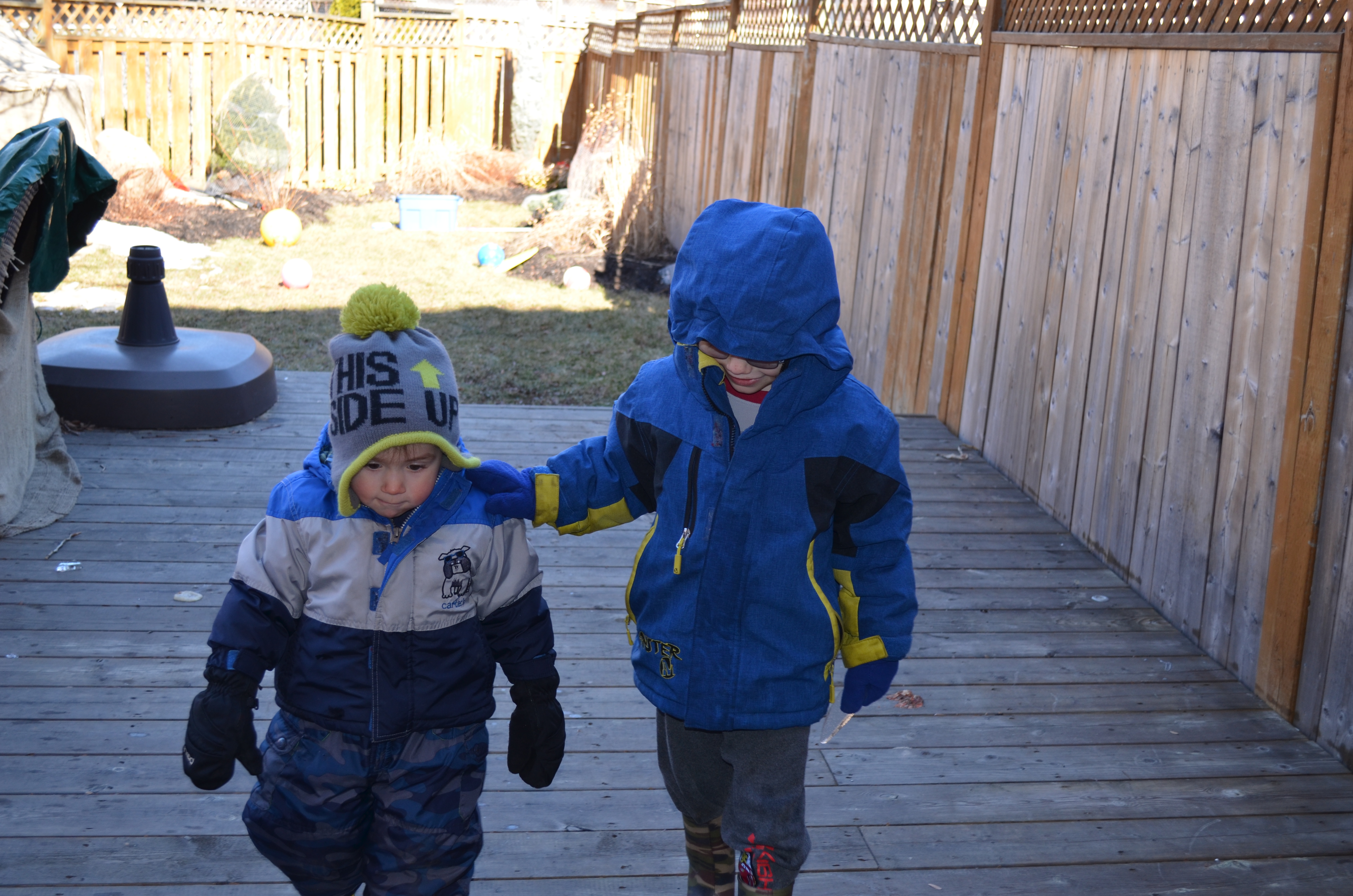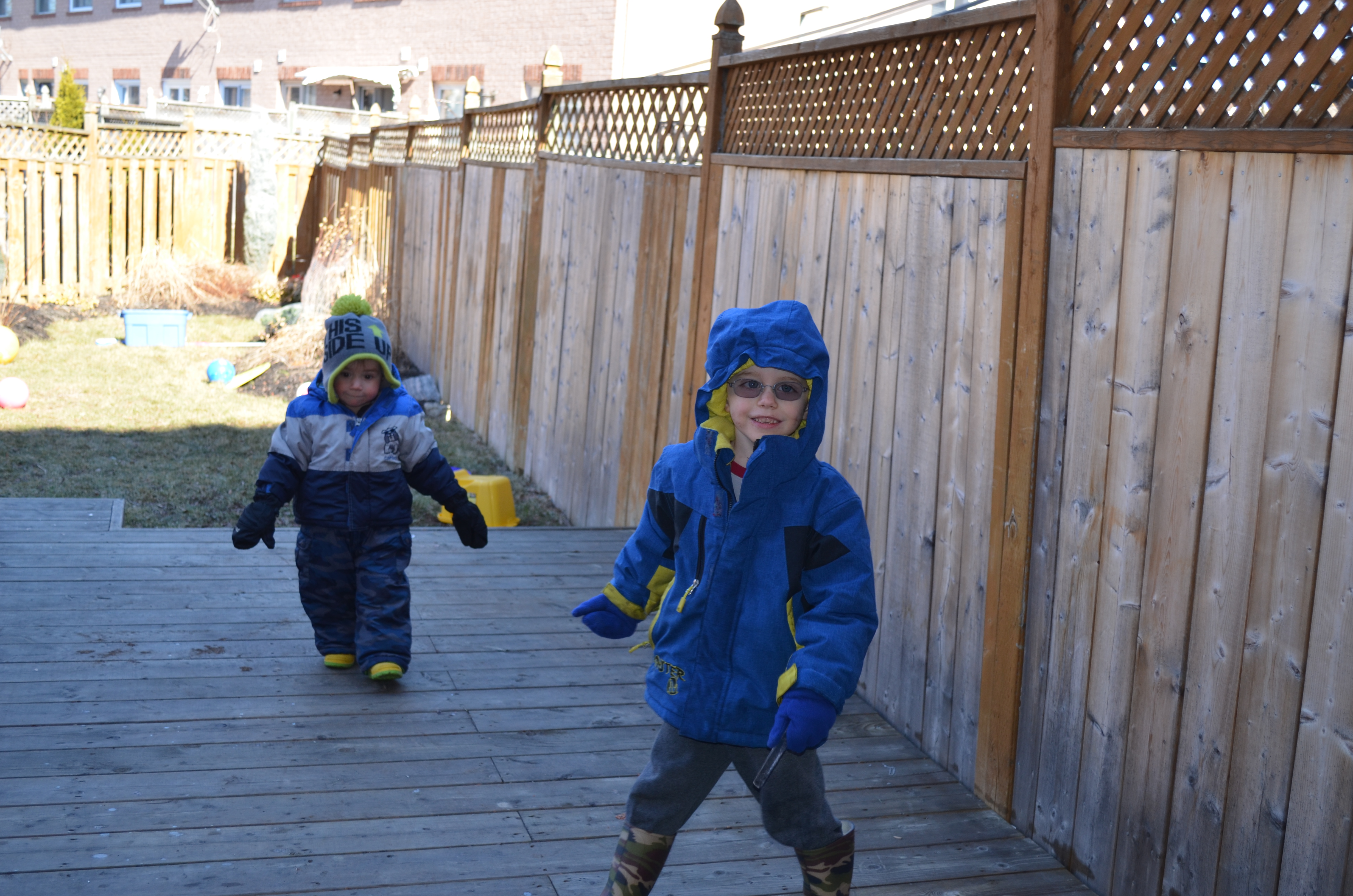 In the first week of April, Aunt Julie and Macklan came for a visit. It was still a little chilly for the kids to play outside for long periods of time, but hey still got to have a little fun in the backyard. Here are some pics from their visit.