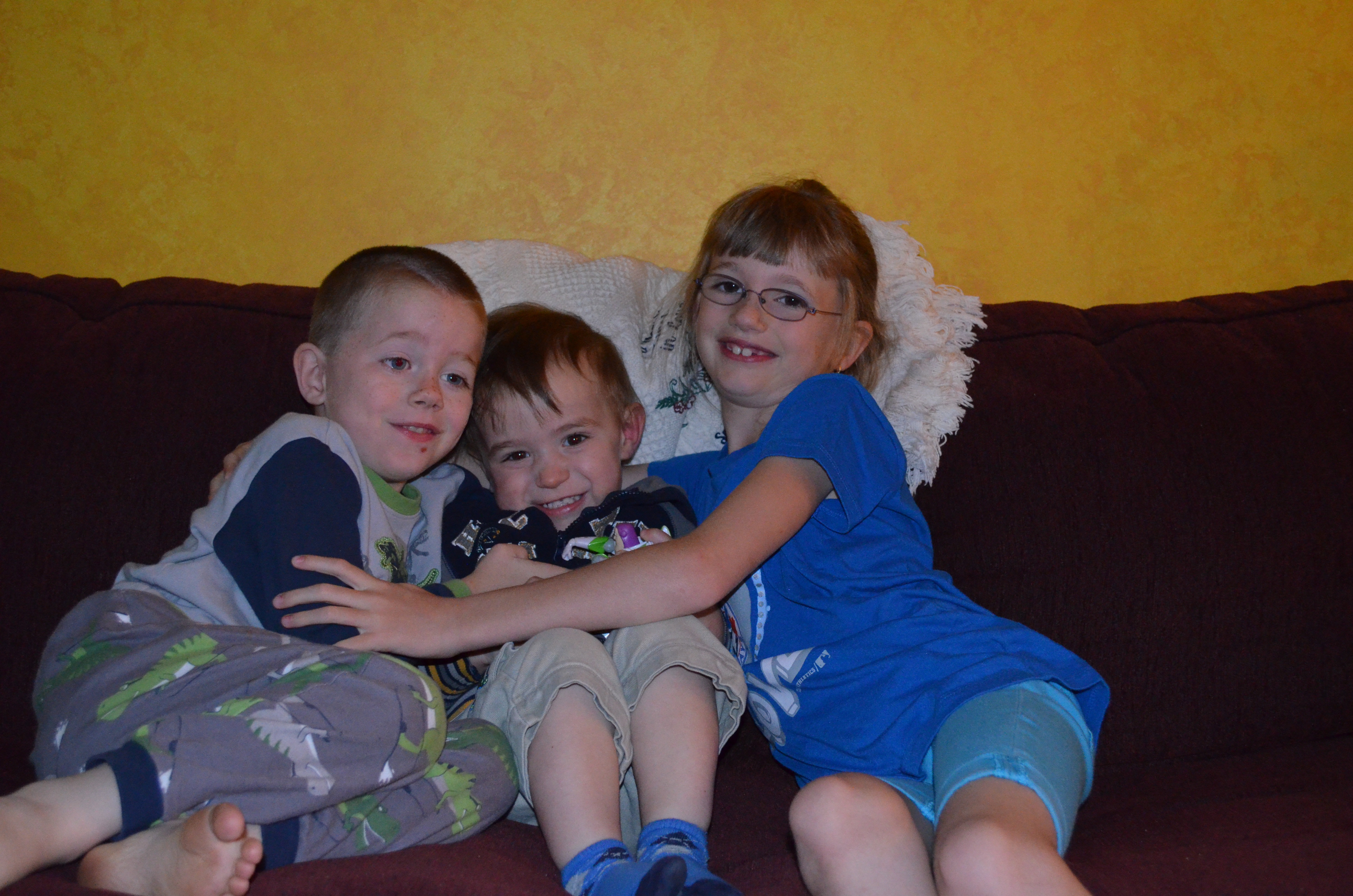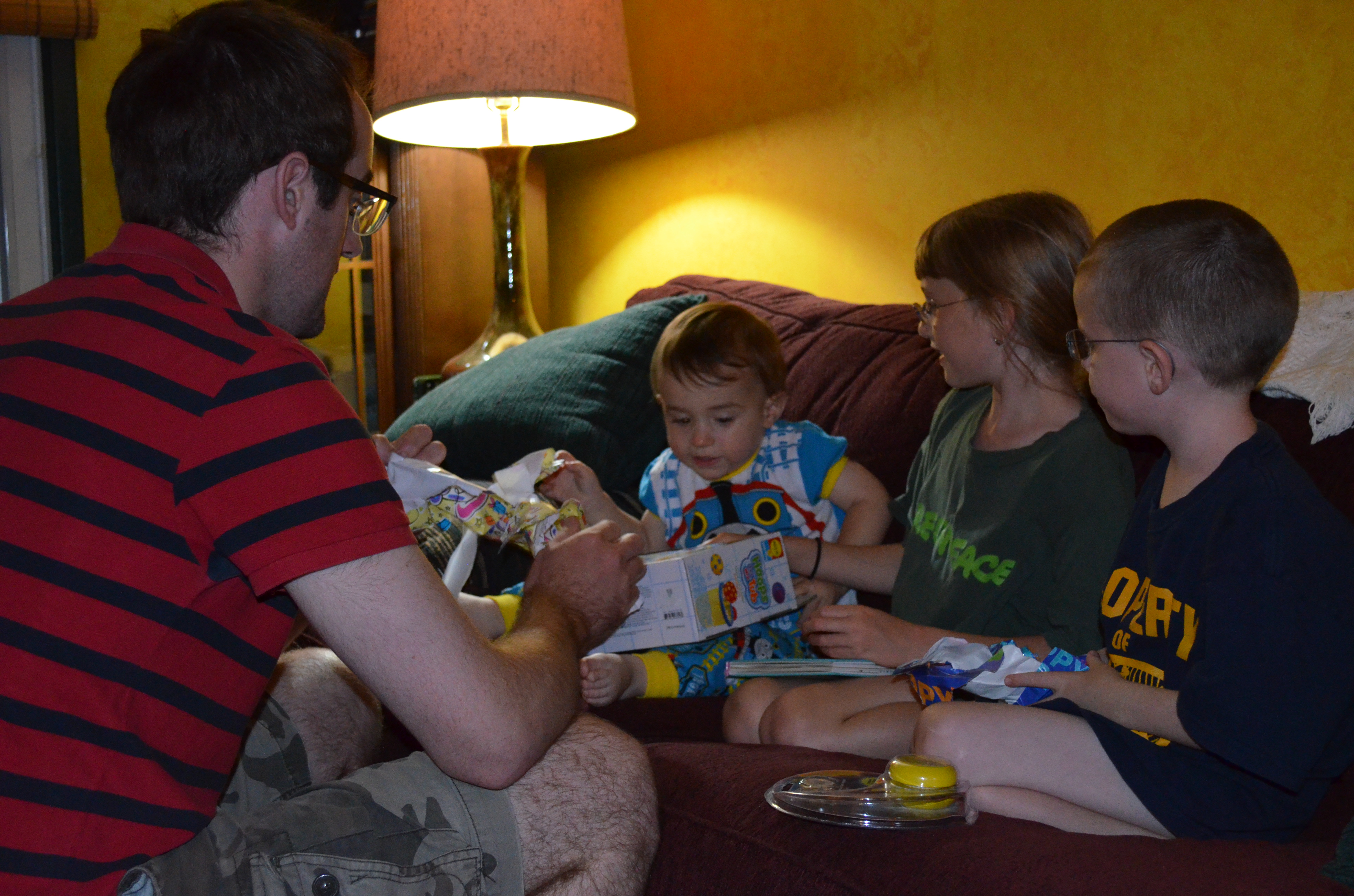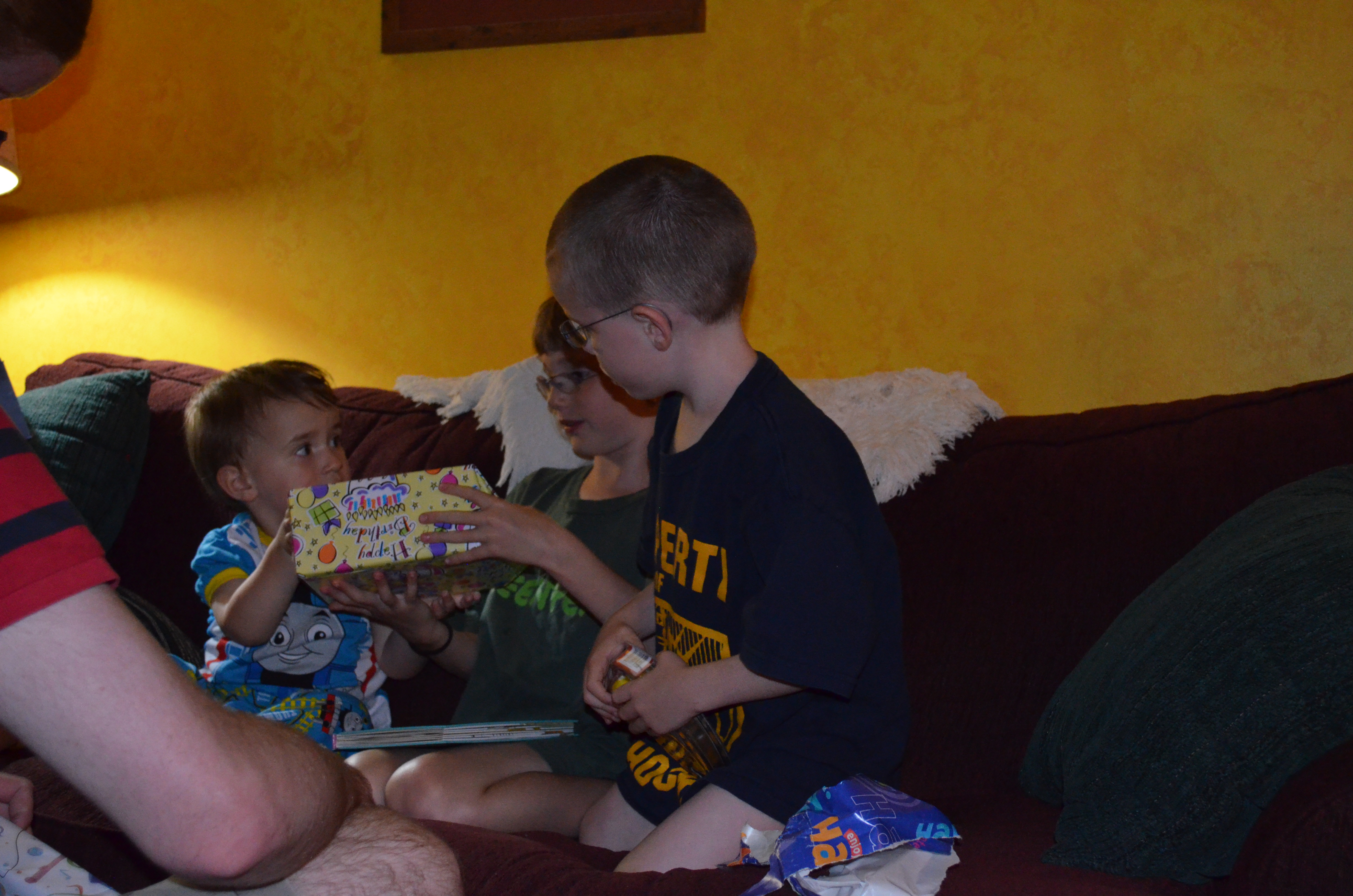 On Thursday, Rob caught the bus back to Toronto in the morning, but not before giving Abby, Aiden and Macklan their birthday presents.
