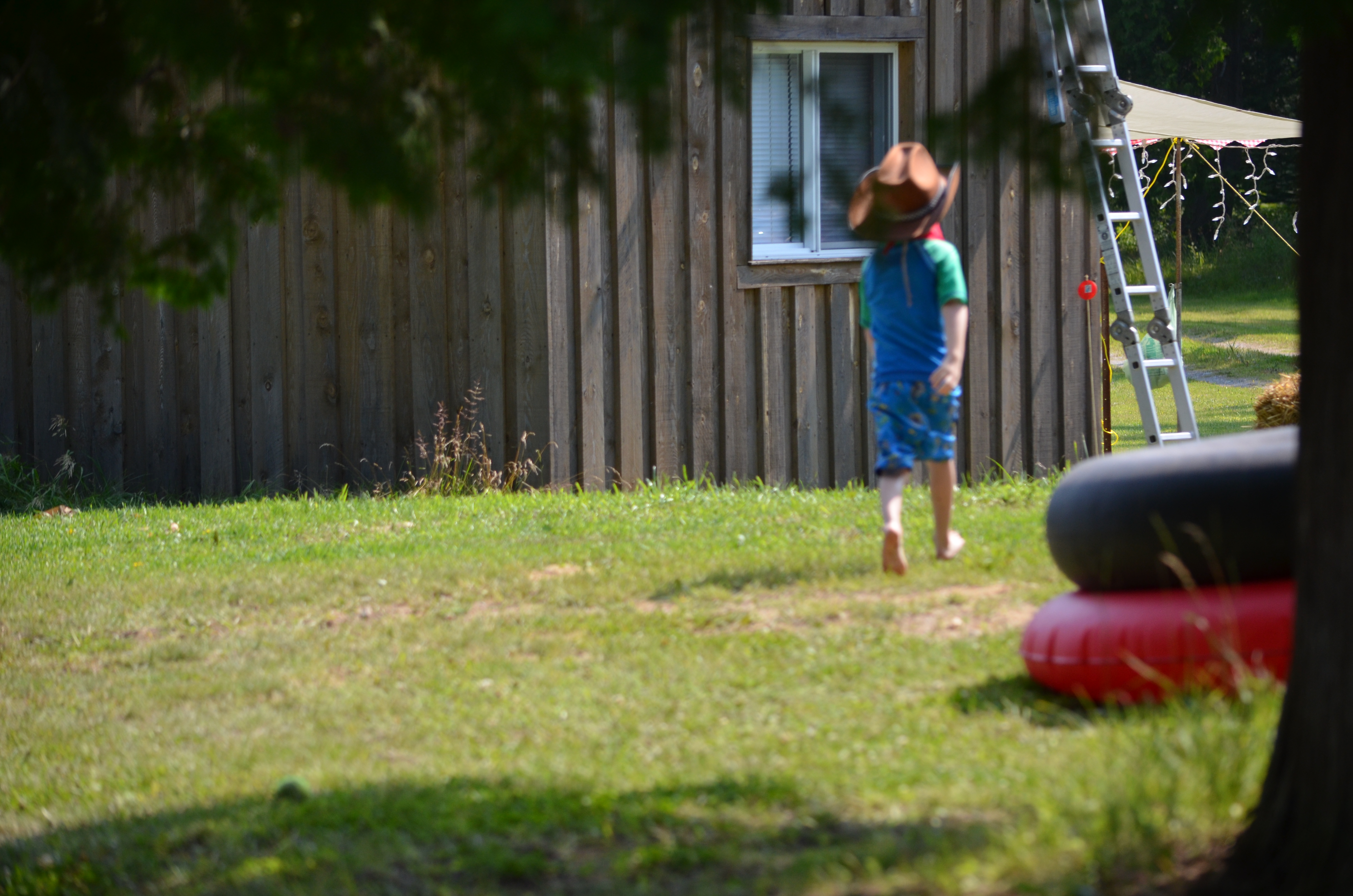 The kids spent the afternoon playing with the dogs and Uncle Aaron showed them how to use the paddle boat by themselves so that they could paddle around the shore. He did forget to tell them though that if you get out of the paddle boat to get onto the dock, the paddle boat will float away. Fortunately Aaron went out to rescue the boat 🙂