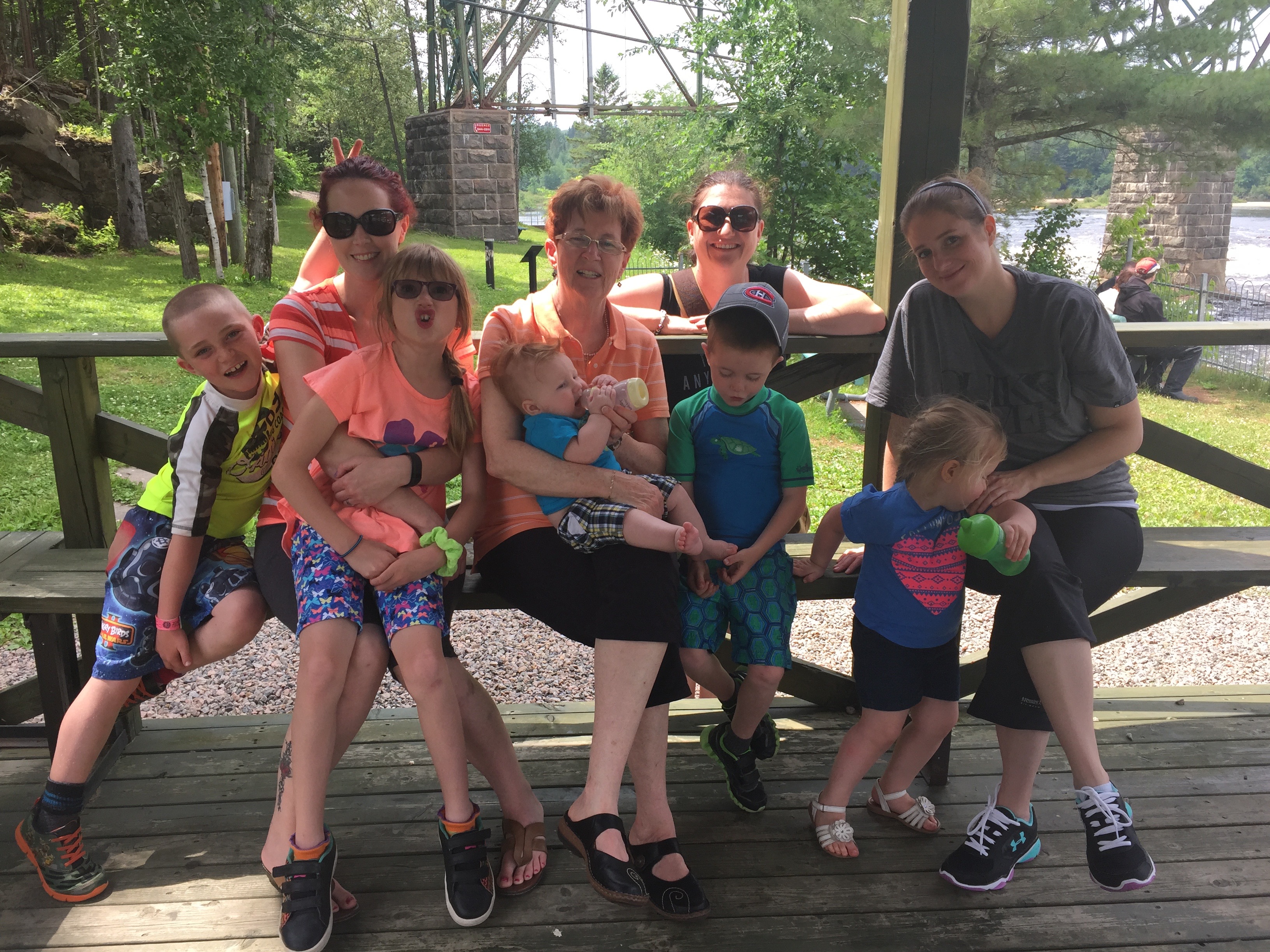 On Friday morning, Holly and Melissa took the kids to park and splash pad to play, while Martin and I took the dogs to their park. After that, most of us went to the Jacques Cartier river for a picnic. Martin and Sage had to go home and to some stuff at the house. The place we went for the picnic was underneath the one-way bridge that leads into Shannon. We all had another picnic courtesy of Cathy and Jack (beer included!!!)