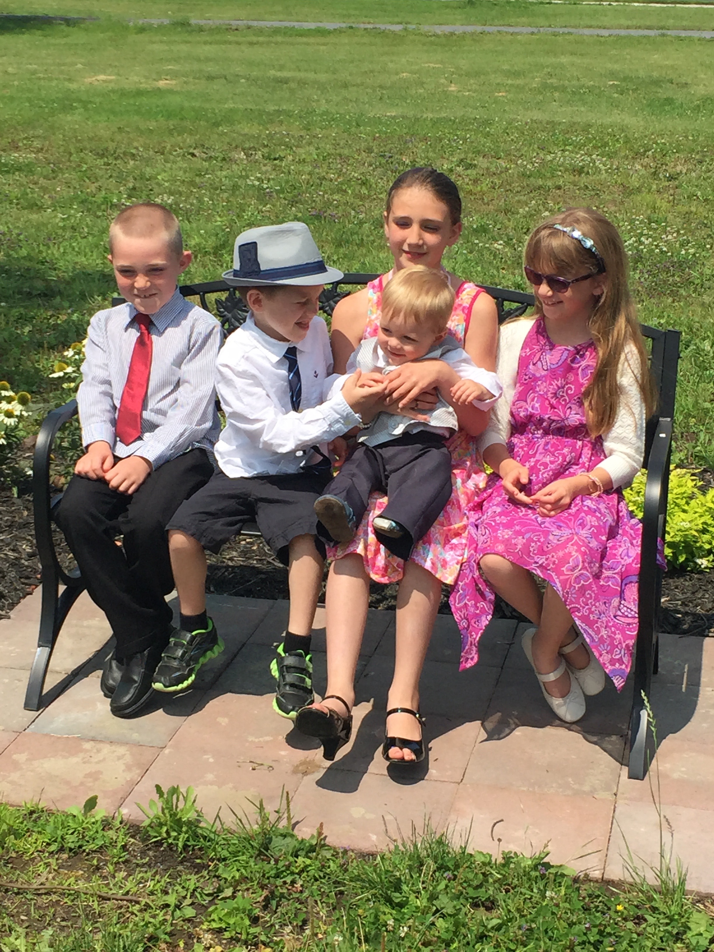 After the ceremony we all returned to Martin and Holly’s for snacks, cake and presents. We also took some group shots on the front lawn of the church and Holly’s as well before everyone changed out of their dress clothes. The kids, except for Aiden, all got in the pool and the adults visited for the afternoon. We then tidied up the house and packed a little for our trip home in the morning.