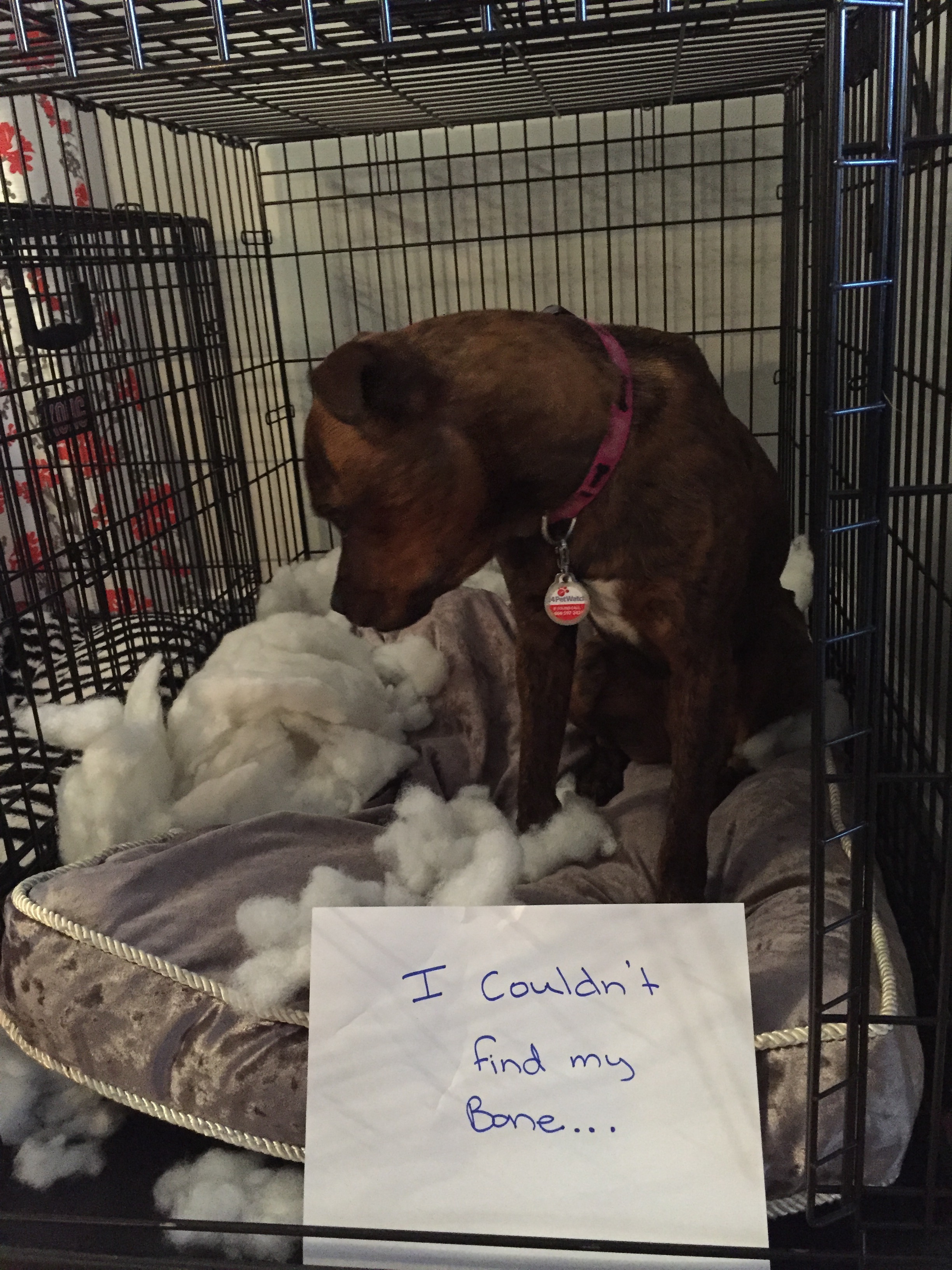 So, Marley has gone through several beds, but this was one of the worst. While she only sometimes sleeps in her crate, if she finds a loose edge on the bed, she will not let up until it is completely open.