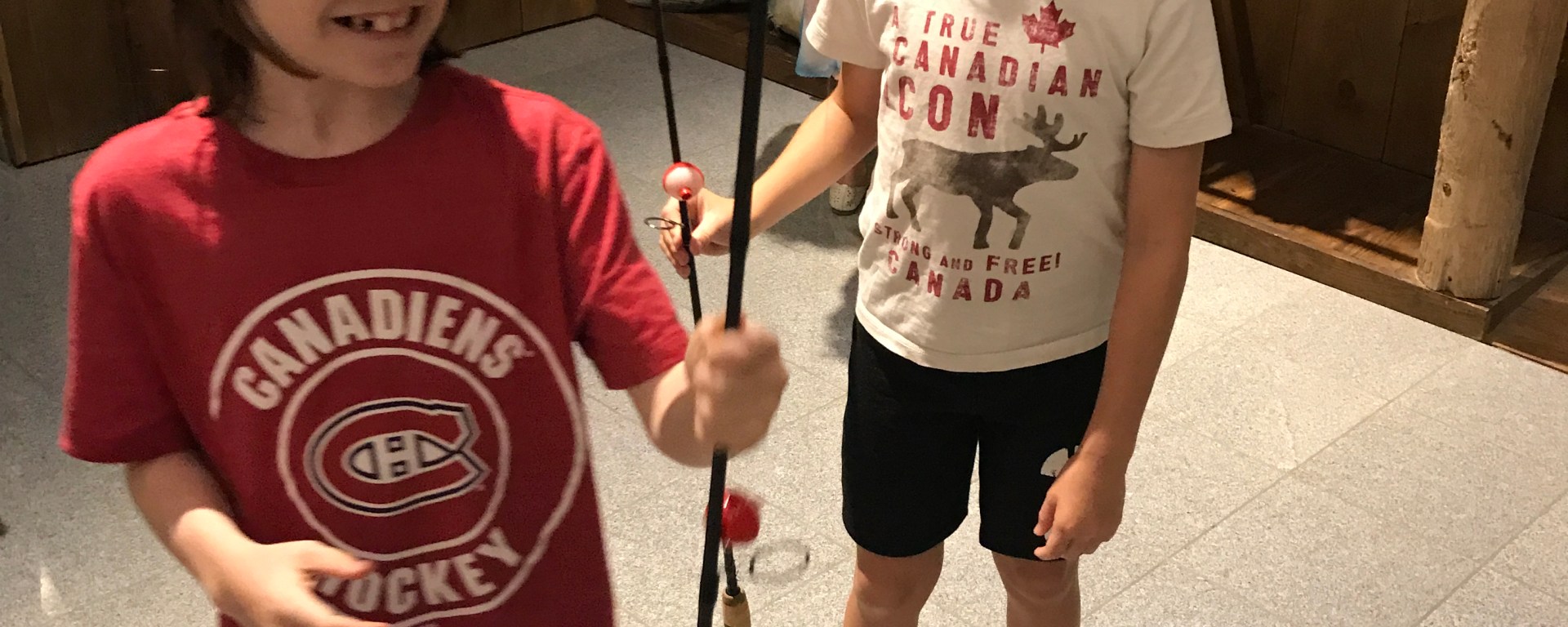 For Aiden’s 9th birthday, we had a birthday party at the Ontario Federation of Anglers and Hunters Heritage Centre. It was great because Aiden got to fish with all of his friends, which he absolutely loved. Aiden fell in love with fishing at his Auntie Joyce & Uncle Al’s place in Marten River where all he ever wants to do is go fisihng, so we thought that we would give him a birthday where he gets to fish. In addition to inviting his new friends from school, he also invited William and Ava from Mississauga for the party. At the party the kids shot bows and arrows in their archery room and then they all fished in their fish pond. Afterwards, we all enjoyed pizza chips and pop in their museum.