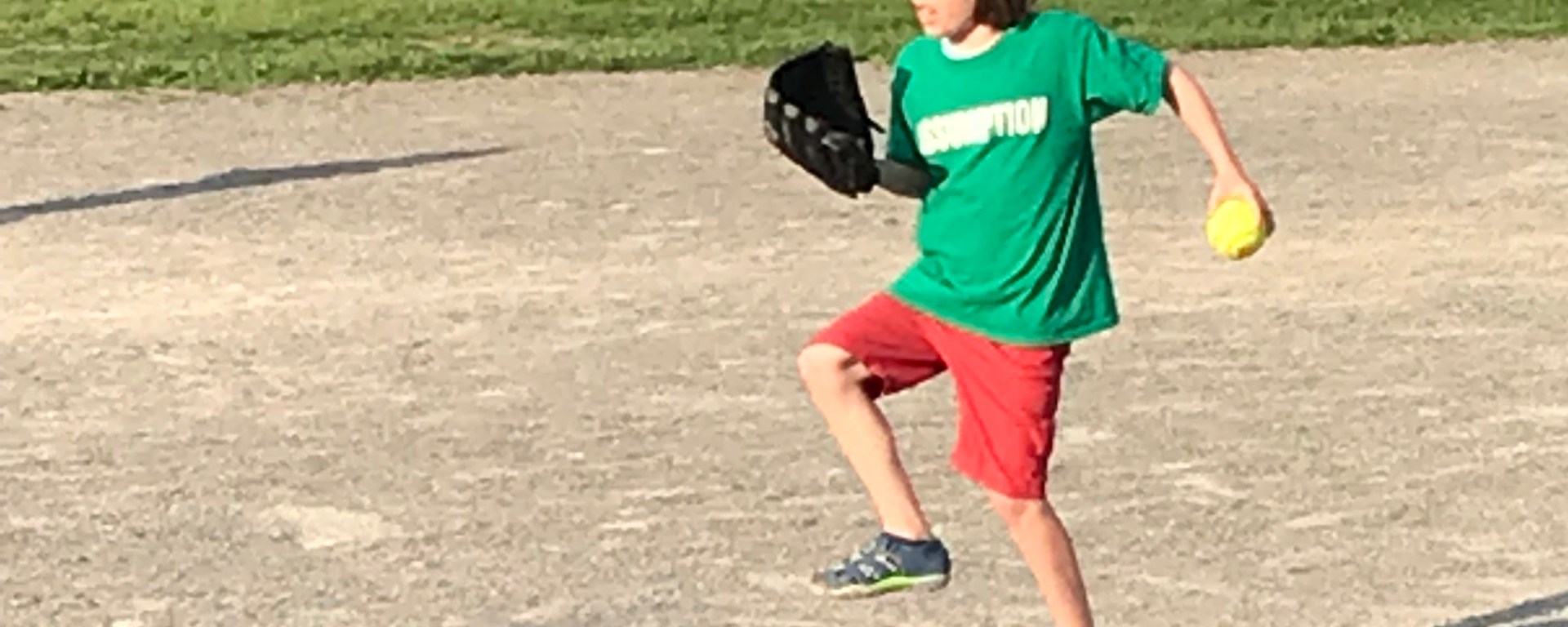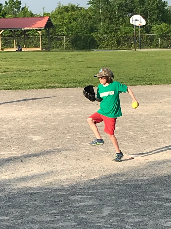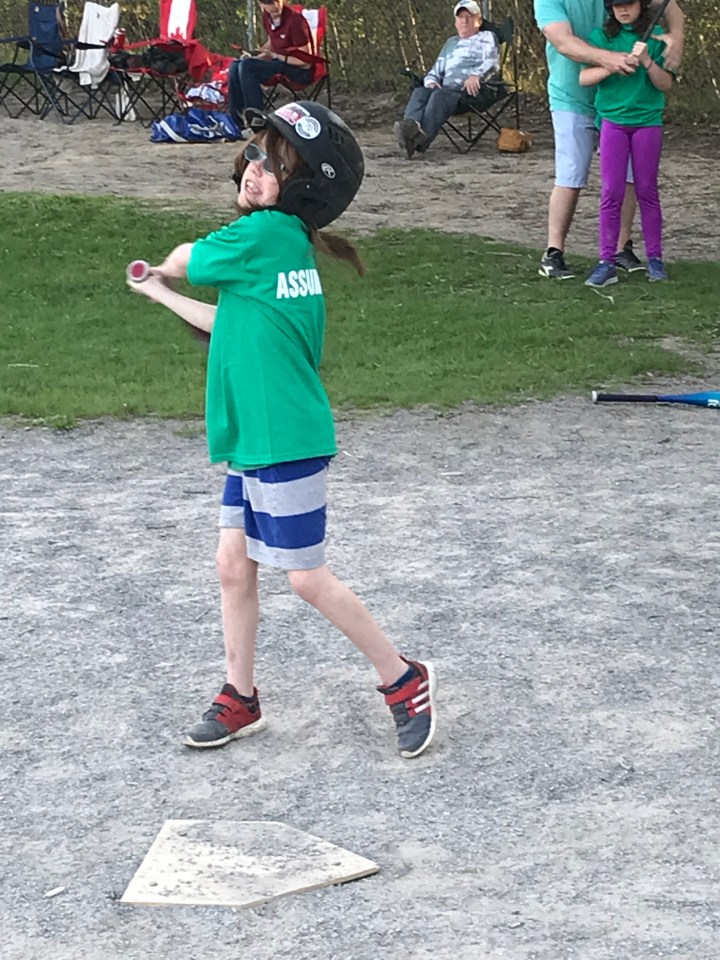 Aiden played his first season of Church League Softball this year. This is something unique to the Peterborough Area and has been running since I was a kid. Me and my siblings all played church league ball in Donwood every year. It runs from early May until the end of June and is finished before the summer holidays. Aiden signed up for the Assumption Team since we live in that area. He had a successful first season, winning all of his games. We saw great growth throughout the 2 months of playing. In his first games he never swung at the baseball, chased down players to tag them without the ball in his glove and had trouble throwing with accuracy (see videos below). By the end of the season, he regularly got hits or walked to get on base, scored runs, had pitched a couple of innings and even fielded a couple of balls that were hit to him.